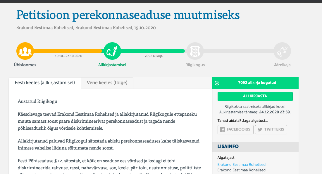 Petitsioon on lugemiseks ning allkirjastamiseks leitav rahvaalgatus.ee keskkonnas.